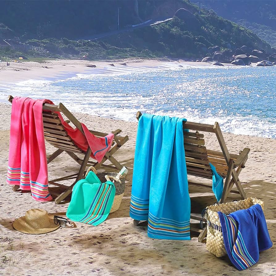 Complete your summer fun with these awesome towels ready for thatwarm beach. From 100% Egyptian Cotton, these soft and quick-drytowels will complement this perfect season.
